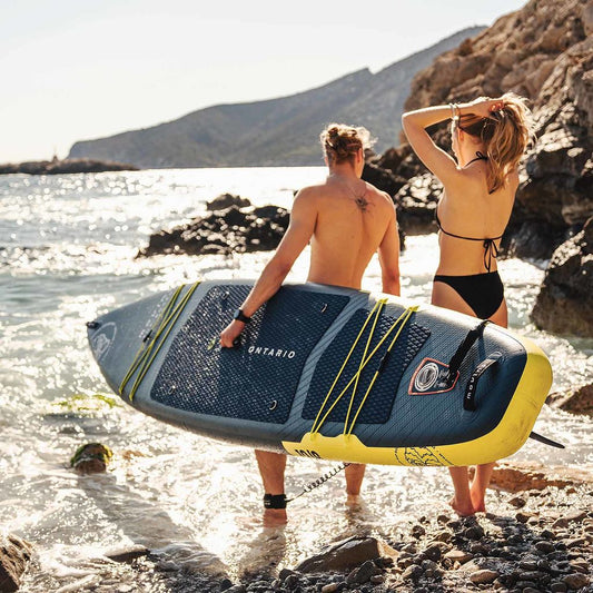 El modelo Touring Ontario cuenta con una aleta central que ayuda a mantener el rumbo, aportando estabilidad lateral y reduciendo la resistencia al avance. Esta única aleta central más grande ofrece una excelente estabilidad y menor resistencia. Además, la instalación de la aleta es extremadamente sencilla y no debería presentar ninguna dificultad. Solo necesitas insertarla y bloquearla, sin necesidad de tornillos ni herramientas. Apreciarás esta facilidad cuando quieras preparar rápidamente tu tabla para el viaje.