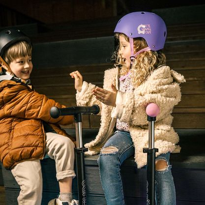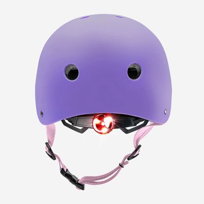 Prioritizing the safety of young adventurers, our helmets are equipped with a rear light. This light functions as an adjustment dial to fit your child's head size. It can be set to a steady glow or a pulsating mode, with speed variations to suit your child's preference. Battery-powered, this light significantly increases visibility, ensuring your child can be seen even on cloudy days.