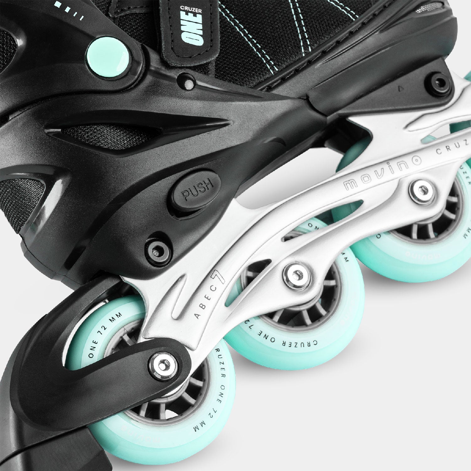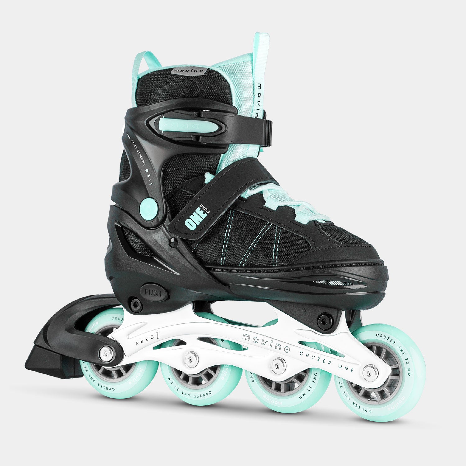 The adjustment system in the Movino Cruzer One rollerblades allows you to enjoy them for several years. Mastering the 4-step adjustment is child’s play: unfasten the Velcro, press the “PUSH” button, and set the size that fits you. The skates are available in three versions:
