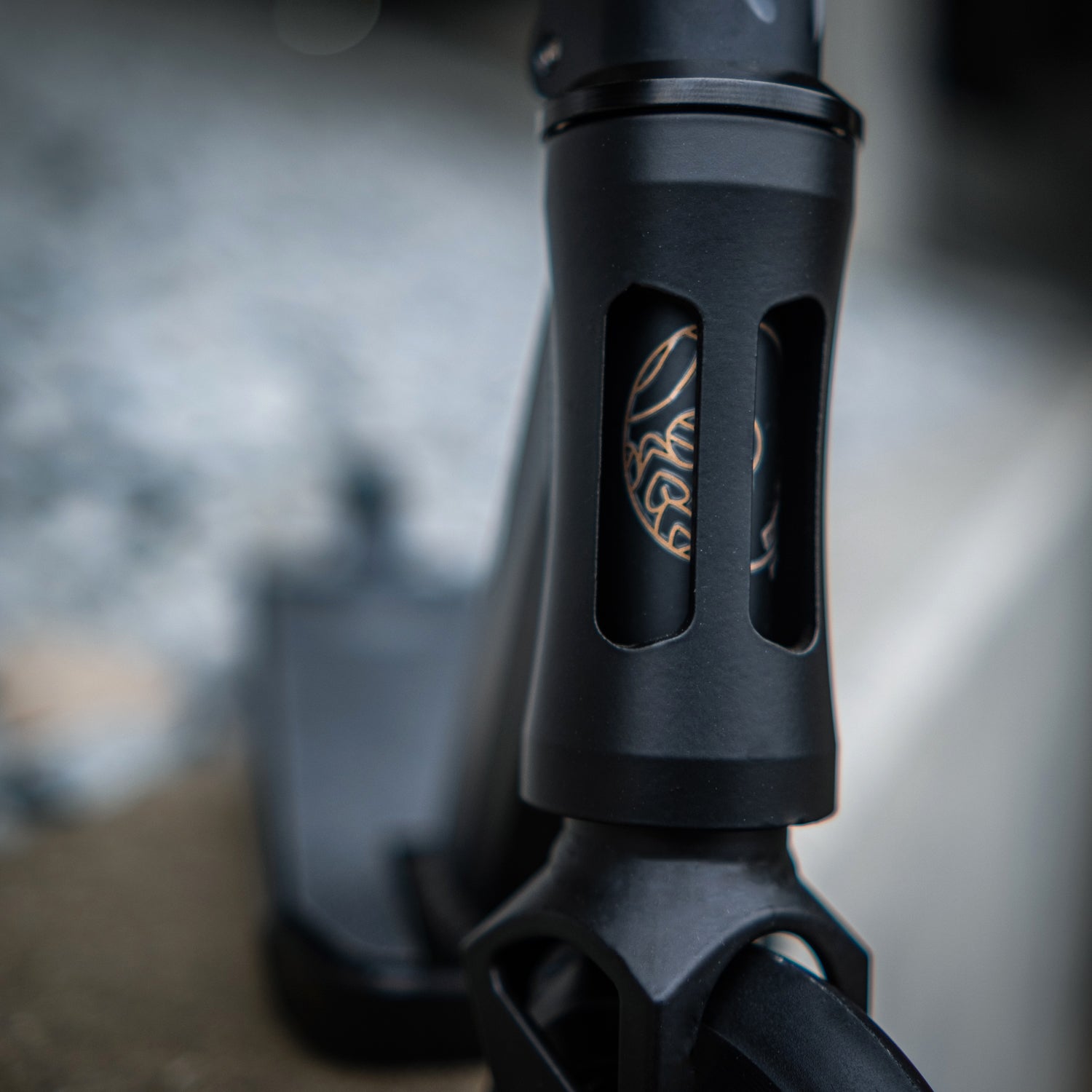 A solid and durable T-bar measuring 59 cm in length and 54 cm in width will let you master new tricks to your heart'’s content. Smooth handlebar operation is ensured by the IHC compression system, which has the undeniable advantage of being easy to maintain. The whole setup is topped off with comfortable TPR grips with cross-grooving, guaranteeing a secure hold.