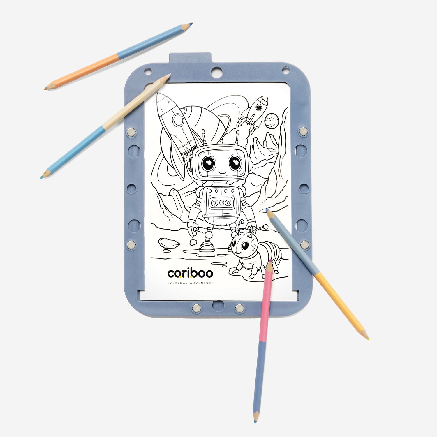 La ventana frontal te permite echar un vistazo a los tesoros que tu hijo ha empacado. Alternativamente, tu hijo puede usar el marco magnético para mostrar una imagen personalizada: solo necesita colorearla para hacer que la maleta sea verdaderamente única. Nadie más tendrá una igual.