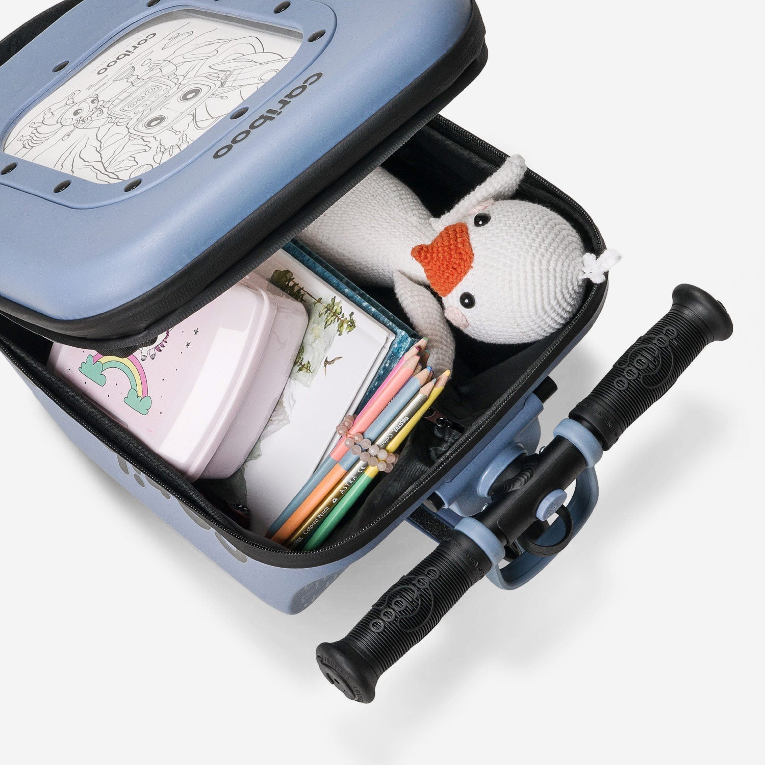 Los aeropuertos, estaciones de tren y áreas de descanso a menudo implican largas esperas, lo que puede ser agotador para los viajeros más jóvenes. El Scooter iTravel convierte cada momento del viaje en una oportunidad para jugar. Con un compartimento para sus tesoros favoritos, tu hijo siempre tendrá algo para entretenerse, brindando a los padres un merecido descanso.