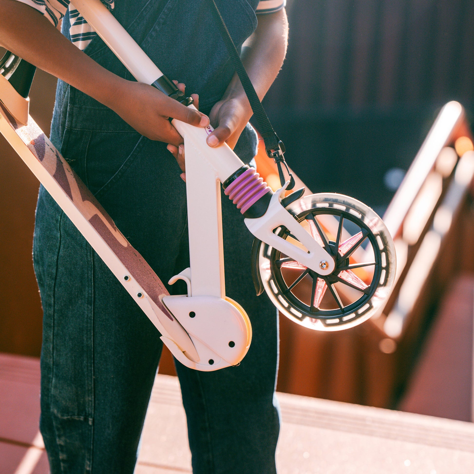 Sí. El patinete cuenta con un sencillo sistema de plegado y una correa de transporte.