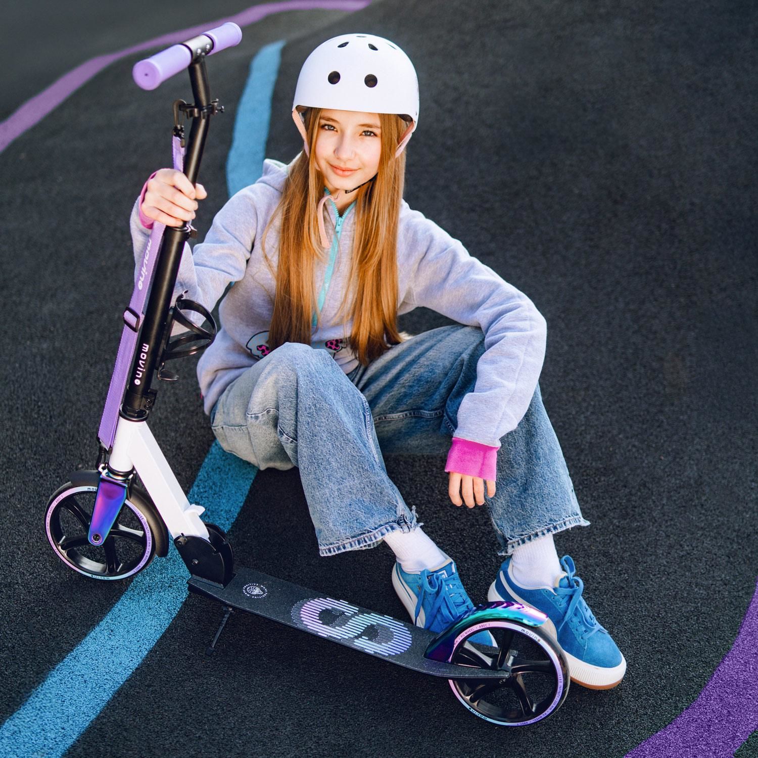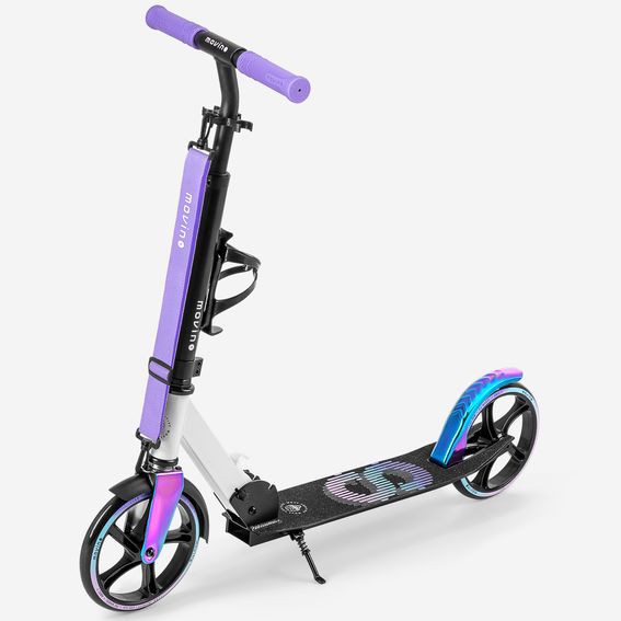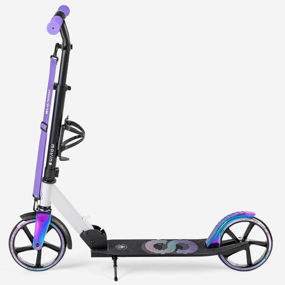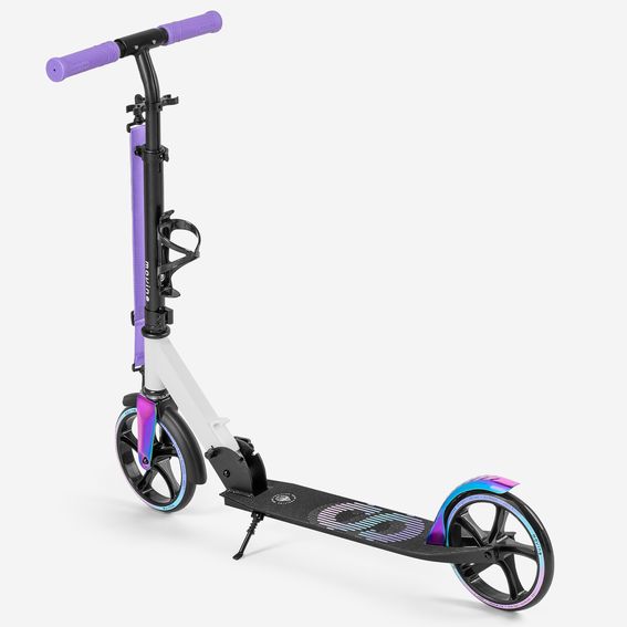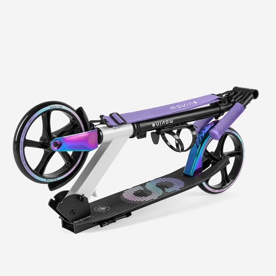 El Infinity Rainbow es un patinete que siempre puedes llevar contigo. Su mecanismo permite plegarlo rápidamente, y la práctica correa de transporte te permite colgarlo al hombro como si fuera una bolsa. Con solo 3,5 kg de peso, puedes llevarlo fácilmente a la escuela, al transporte público o a salidas con amigos.