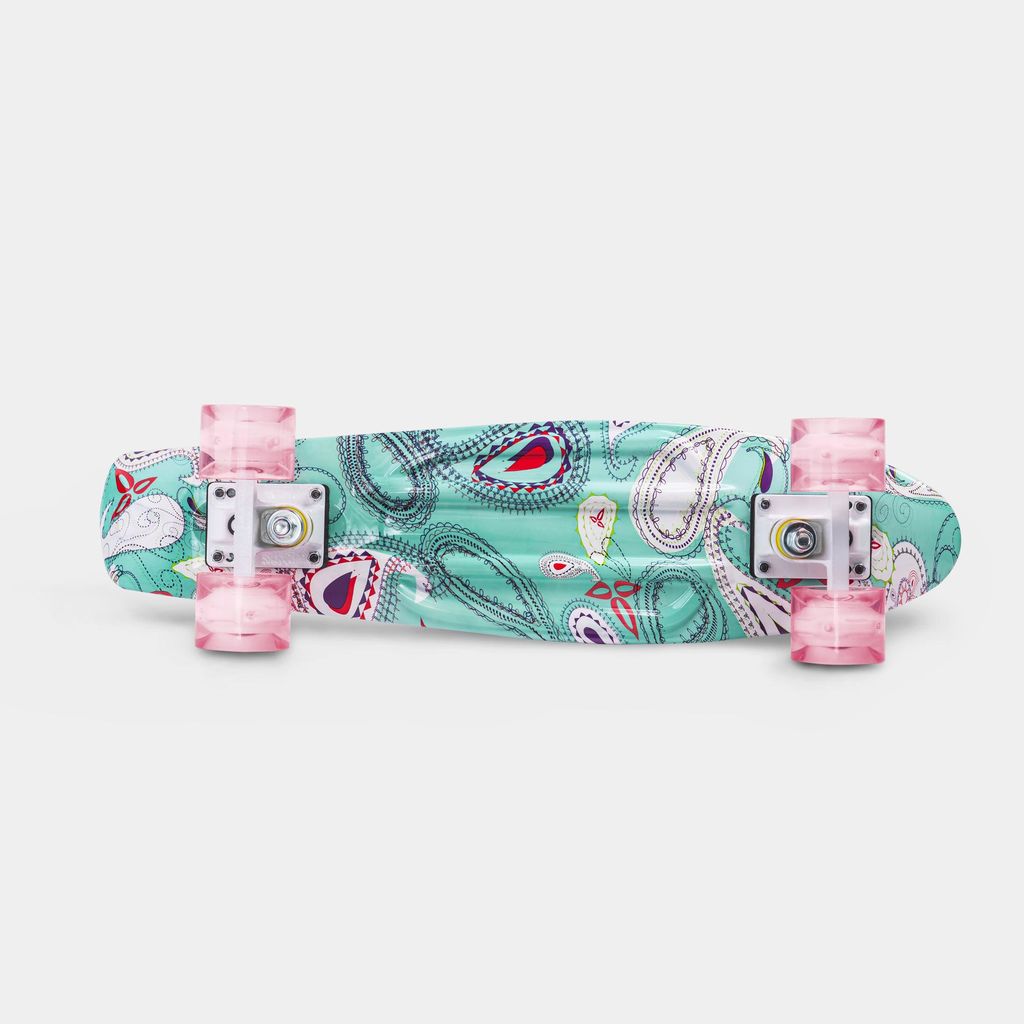 Looking for a city skateboard that will make you take to it like a duck to water? Introducing: Movino penny board! Featuring a 56,5 cm x 14,5 cm deck, quality ABEC-9 bearings, comfy and soft wheels with LEDs, aluminum trucks (adjustable turns), this board is perfect for the cityscape. And... Mostrar más