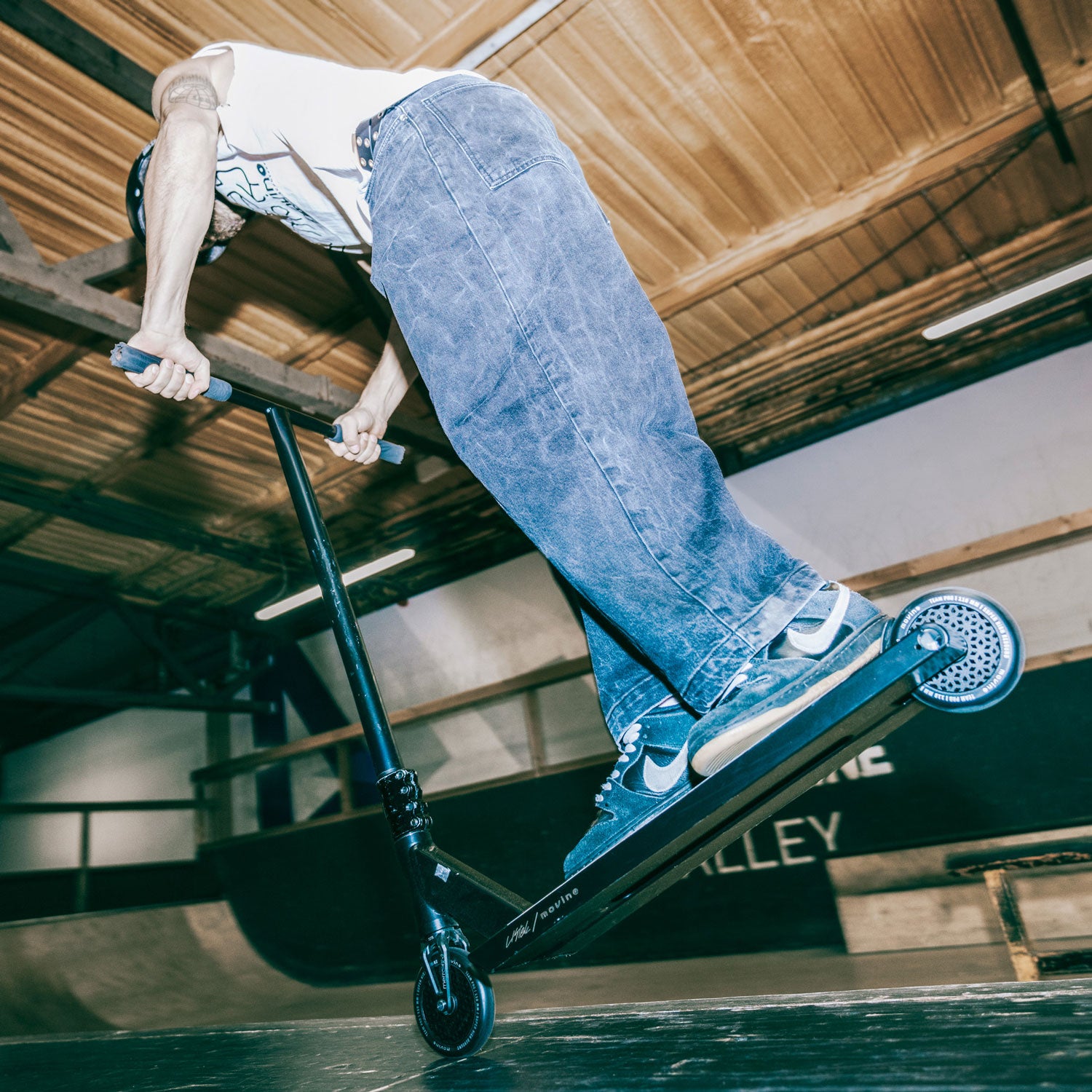 Años de entrenamiento, tanto propios como de sus alumnos, han permitido crear una tabla perfeccionada y diseñada por un rider consciente. Es la elección ideal para quienes desean conquistar los spots urbanos más exigentes con sus trucos.