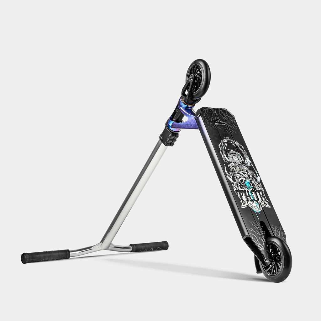 El Movino Thor es un patinete diseñado meticulosamente que permite realizar trucos complejos en el skatepark. Su creación fue posible gracias a la colaboración de muchos profesionales: riders para quienes las acrobacias aéreas son una rutina diaria y el equipo Movino, que posee un amplio conocimiento sobre patinetes. Esta asociación dio como resultado la versión renovada y mejorada del popular modelo Thor. ¡El manillar ligeramente más largo, la nueva forma y las dimensiones de la base permitirán un refinamiento aún mayor de los trucos! ¡El renovado Thor es la opción para los riders que no quieren parar y buscan constantemente nuevos desafíos!