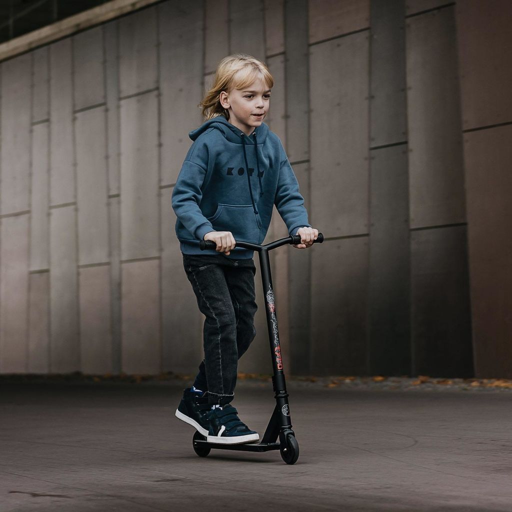 El primer patinete de competición de tu hijo debe ser bastante universal, pero definitivamente de alta calidad. El ajuste correcto también es importante. Tyro cuenta con ruedas de núcleo de nailon de 100 mm, un sistema de compresión roscado y una plataforma de aluminio. ¡Todo eso con solo 2,9 kg! Este es un patinete ligero pero resistente que abrirá un mundo completamente nuevo para tu pequeño piloto.