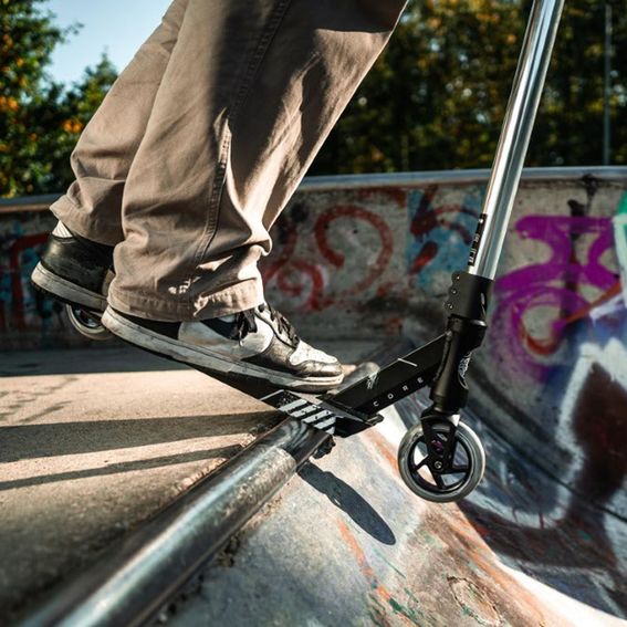 46 cm es una longitud excelente para la plataforma en el park riding, ya que facilita girar el scooter en el aire. El peso reducido ayuda a ejecutar trucos desafiantes, incluso en rampas más pequeñas.