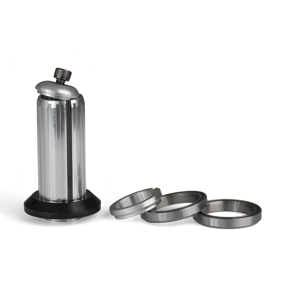 Un juego de dirección completo para el patinete acrobático. Junto con el juego de dirección, el conjunto también incluye un disco con tapa superior y tornillo de compresión.